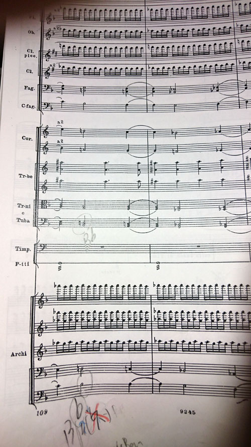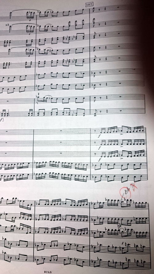 2017/9/22 ショスタコーヴィッチ交響曲5番の話…その2 (エンターザミュージックの回はこちら!ttps://youtu.be/wG6YrBNtYEE?si=Z-jGq8JGCgTcLcF4) ショスタコーヴィッチ交響曲5番の話は以前に書いたが、先日日本フィルと久しぶりに取り上げた際に、最近出版されたという新校訂版の存在を知り、その内容に驚愕した。 一番驚いたのはよく問題になる4楽章最後のメトロノームの速さの単位が本来4分音符だったのが8分音符に変えられていることだ! これは絶対にあり得ない。まず8分音符単位で188の速さを指定する訳がない。(ここの音楽を8分音符単位で感じる事はあり得ないから) 本来の指定 改訂版では倍遅い8分音符単位に。(遺族による改訂?という版) このフィナーレの問題は、初演したムラヴィンスキーがメトロノームよりずっと遅いテンポで初演して以後それがロシアの伝統になっている事にある。 ショスタコーヴィッチがこの遅いテンポに文句を言ったという記録は無いが、バーンスタインの遥かに速いスコアのテンポに近い演奏に感激して(勿論感激したのは演奏全体の事で最後のテンポの事をどう思ったか分からない)バーンスタインを抱き締めた記録が残ってる。 僕はこう考えてる。 ショスタコーヴィッチは作曲当時最初のスコア印刷通りの速いテンポを想定していた。(音楽の構造上も4楽章の中間部からリタルダンドを挟みながら次第にテンポが速くなるのが自然に感じる) これはまるでスターリンを茶化すような恐ろしい考えで、おまけに以前も書いたが金管と打楽器の勝利のようなファンファーレがffなのに対して、弦楽器と木管楽器の8分音符の連続はfffで勝利のファンファーレを掻き消すという凄いアイデアだ。 またよく指摘されるのがEsクラリネットだけ4分音符なのはテンポが速いと演奏不能になるためで遅いテンポなら8分音符でよかったはず。 ショルティやスラトキンの本来のスコア通りの速いテンポの録音が残ってるが、勝利的なイメージは全くなく異様でぞっとする… 因みにバーンスタイン初録音版はテンポは速い方だが、金管にルバートがかかり、8分音符はそれにつけてアンサンブルしてしまっていて8分音符が伴奏の様に聞こえてしまい勝利を掻き消してるイメージがない。ここはインテンポで演奏しないと8分音符が勝利を否定しているように響かない。 ショスタコーヴィッチの前で何度も指揮したロシアの巨匠ムーシンに英国留学時代に僕は何度か教えて頂いたが、ショスタコーヴィッチはテンポに関して指揮者に文句を言う事は殆ど無かったそうだ。 指揮者が信念を持ってメトロノームと違うテンポで演奏するのは当たり前の事で、多くの作曲家はその結果がよければその演奏を認める。 ムラヴィンスキーの初演の時もショスタコーヴィッチの当初の考えとは違うテンポだったが、その演奏が良かったから(当時のソ連で演奏するのに相応しいスタイルだったから)そのままにしたのだと思う。 本当に印刷ミスなら、とっくにショスタコーヴィッチ自身が改訂していたと思う。 ただここで大切なのはテンポよりも、前述したように8分音符が勝利を掻き消してるような異様な響きとして聴き手に伝わるかどうかだと僕は思ってる。 そして、ムラヴィンスキーが4分音符=188より倍近く遅いテンポで指揮したのがロシアの伝統になったとしても、何の根拠もなく表記としてあり得ない八分音符単位に変えてスコアに印刷するのはおかしい。 改訂者は安易にメトロノーム指定を変えるべきではない(他の作曲家の作品の新校訂版でも時々感じる問題)。 これから将来の若い指揮者がこの作品を勉強するときに、最初は4分音符で表記されていた事を知る必要があると思う。 因みにこの改訂版の校訂者によると、1939年の最初の版では4分音符=188だったのが、1947年の版ではムラヴィンスキーが指揮したテンポの8分音符=184 とされ1956年版でも同じ表記だったが、1961年のショスタコーヴィッチ全集版で再び4分音符=188 に戻されたとある(当然だと僕は思う)。1980年版も4分音符のまま。 因みにショスタコーヴィッチが亡くなったのは1975年だから全集版は充分信用できる。 またショスタコーヴィッチがメトロノームに関して発言した記述(記録)は無く、改訂者によるとムラヴィンスキー、ロストロポーヴィッチ、マキシム・ショスタコーヴィッチ他の指揮者が8分音符=184~188のテンポで録音した事を根拠にしてる…いやはや…。 この版でもう1つ気になるのが4楽章練習番号111の3小節前の低音パートの2つ目の2分音符BがHに変えられている事。以前も書いたが元レニングラードフィルの団員さんはBで弾いていたと教えてくれた箇所。 Hにする指揮者もいるがすっきりし過ぎる。 根拠も定かでない。 (写真は旧版) 有名な4楽章練習番号107の4小節目の3拍目のファーストヴァイオリンとヴィオラのAは印刷ミスで新版ではBになってる (写真は旧版)。理論的にもBが正しい。 こちらは2楽章練習番号61の6小節目の1拍目をAsにする指揮者がいるようだが(後に出