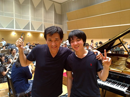 | 2018/8/23 8月25日(土曜)のエンター・ザ・ミュージック第201回はファゴット特集!関西フィルの星野則雄さん(首席奏者)と河渕伸子さんをゲストにこれまで放送した中からシベリウス交響曲2&5番、マメール・ロア、真夏の夜の夢他、当番組ならではの選曲でファゴットが活躍する作品をお届けします。楽しいトークもどうぞお楽しみに! ![]() 星野さんと河渕さんは20年来のお付き合いですがトークは初めて聞く話ばかりで楽しかった~! 8月19日は関西フィルと毎年恒例で第1回から指揮して37回目のMeet the Classic。 早くからチケット完売でありがとうございました! 前半は小栗まち絵先生とチャイコフスキー。まち絵先生は輝かしいコンクール歴だけではなく、今は亡きご主人の工藤千博先生(京響のコンマスでもあり僕も多くの事を教えて頂いた)と共に神尾真由子、木嶋真優、大谷玲子(敬称略)他数多くの素晴らしいヴァイオリニストを生んだヴァイオリン界の至宝的存在。 70歳とは思えない一音一音が丁寧に響き品格高い素晴らしいパフォーマンスだった。何度もやってるチャイコフスキーだけどとっても勉強になった。 これまでまち絵先生の沢山のお弟子さんと共演してきたが、一番の共通点は皆スコアを知り尽くしていてオケと一緒に音楽をしようという想いが伝わってくる。 そのお手本のような素敵な演奏でもあった。 因みに全くの偶然なのだけどお嬢様の工藤里紗さんは、テレビ東京の売れっ子プロデューサーで我が音楽番組エンター・ザ・ミュージックの最初のプロデューサーでもあるのです。久しぶりに里紗さんにも会えて嬉しかった。 後半はベートーヴェンの英雄交響曲。関西フィルとは田園に続いてティンパニとトランペットは古楽器を使用。首席トランペットの白水さんと首席ティンパニの中山さんが積極的に古楽器を使用する事にしてくれたおかげで新しいサウンドを目指せてとっても嬉しい。 今回も生命力溢れた関西フィル&藤岡らしい熱い英雄になった手応え。いずみホールは工事のため今回の会場は昨年生まれた梅田の常翔ホール。期待以上の素敵な音響!駅からも直ぐだしまた是非ともここでコンサートしたい。 演奏会の模様はエンター・ザ・ミュージックで複数回に分けて放送されます。 東京に戻り題名のない音楽会の収録。 新企画《夢響》の第1回。素晴らしい企画でした。 オーケストラは来年から関西フィルと兼任で首席客演指揮者に就任する東京シティフィルハーモニック管弦楽団。 全国から楽器を問わずオーケストラと共演したい人を募集して全国4ヶ所でオーディション。選ばれた10名は8歳~64歳。通常楽器や歌に加え、オカリナ、草笛、段ボールの打楽器など多種多様。 そして驚くべきはソリストとオーケストラは全くリハーサルぜず共演は本番一発勝負。ソリストだってリハ無しは凄く緊張するし、オケも僕も本番でいきなりソリストに合わせるのは凄く難しい。 ソリストと綿密に打ち合わせをして、オーケストラだけの練習ではソリストの意向に沿ってリハしたもののさすがに本番前はこちらも凄く緊張した。 びっくりしたのは10人とも凄い肝っ玉で落ち着いてリハ以上の素晴らしいパフォーマンスだった。おかげでオケと僕もなんとか一発勝負でソリストに合わせる事が出来た。(尊敬すべき大好きな弟弟子の山田和樹さんから誉めてもらいました笑 僕達は二人とも小林研一郎・松尾葉子門下) オケとリハをしないのはとっても危険だが、昨日のお客様や視聴者にとっては凄くエキサイティングだし、オケは本番初めてソリストの演奏を耳にしてそれが凄く新鮮で特別なサウンドを生み出していたと思う。 何よりソリストの皆さんのそれぞれの想いが伝わってきてとっても素敵な時間を過ごせた。 客席にソリスト達の夢の見届け人として服部隆之さん、村治佳織さん、山田和樹さん、藤原道山さん、上野耕平さん、反田恭平さん、という豪華メンバーが列席。皆さん感動してました。 ソリストの皆さん、司会の石丸幹二さんに松尾由美子さん、東京シティフィルに夢の見届け人の皆さん、そして鬼久保美帆プロデューサーをはじめスタッフ関係者の皆さん、本当に素敵な時間をありがとうございました! 放送は10月20・27日(土曜)、再放送は翌日の日曜日にBS朝日 朝8時~です。どうぞお楽しみに! ![]() ![]() 本番前に先日共演した反田恭平さんが楽屋に遊びに来てくれた。 ミューザ川崎で日本フィルと日本初演したラフマニノフのピアノ協奏曲5番の関西初演の打ち合わせもして再来年の関西フィル定期で実現出来そう。 恭平くんは人柄も本当に魅力的で一緒にいて楽しいし、これからが凄く楽しみ。 尺八奏者の藤原道山さんも楽屋に遊びに来てくれて、こちらも先日日本フィルと初演した大島ミチルさんの協奏曲の関西初演の打ち合わせ。こちらも再来年に実現出来そう。彼も素晴らしい人柄で一緒にいて本当に楽しい。再会が楽しみ。 という訳で翌日大阪に帰り、8月26日は関西フィルと城陽定期!でオー