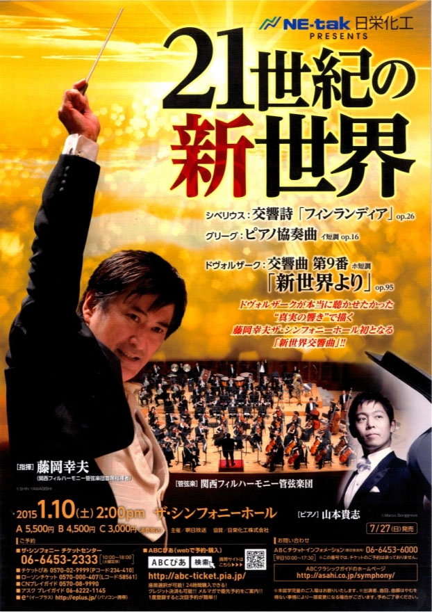 シベリウス:交響詩「フィンランディア」 グリーグ:ピアノ協奏曲 イ短調 ドヴォルザーク:交響曲 第9番「新世界より」 独奏:山本貴志(ピアノ) 管弦楽:関西フィルハーモニー管弦楽団