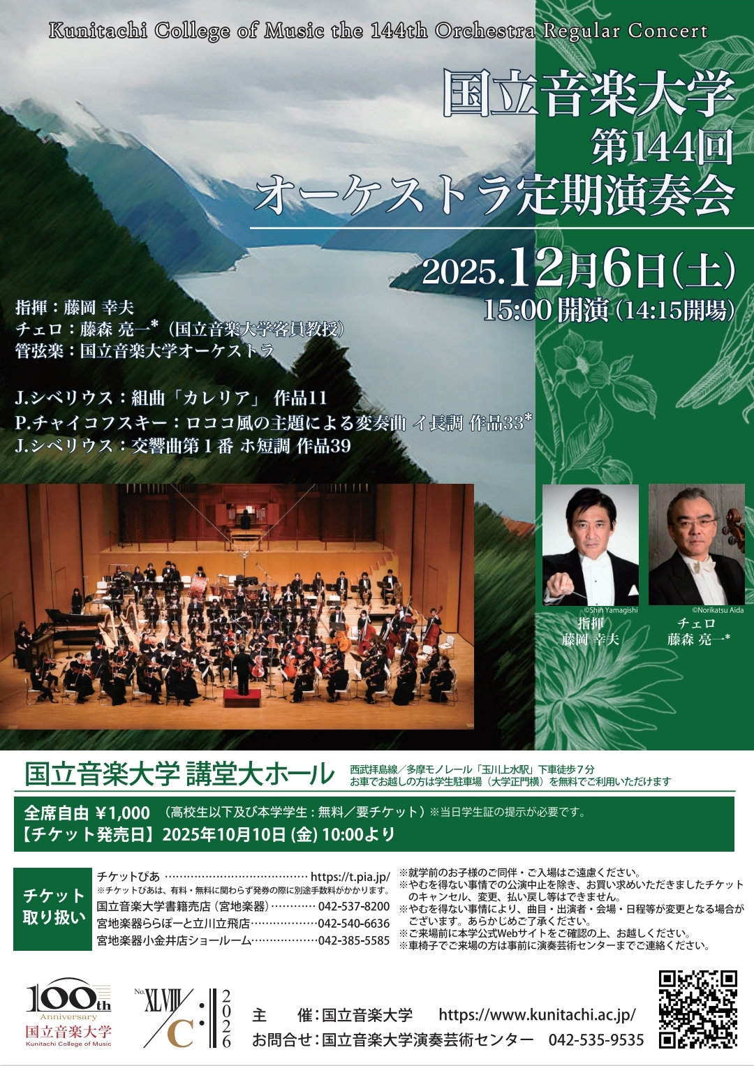 | 12/06 (土) | 国立音楽大学 第144回オーケストラ定期演奏会 ◆国立音楽大学講堂大ホール(東京都) ◆15:00開演 | JPG |