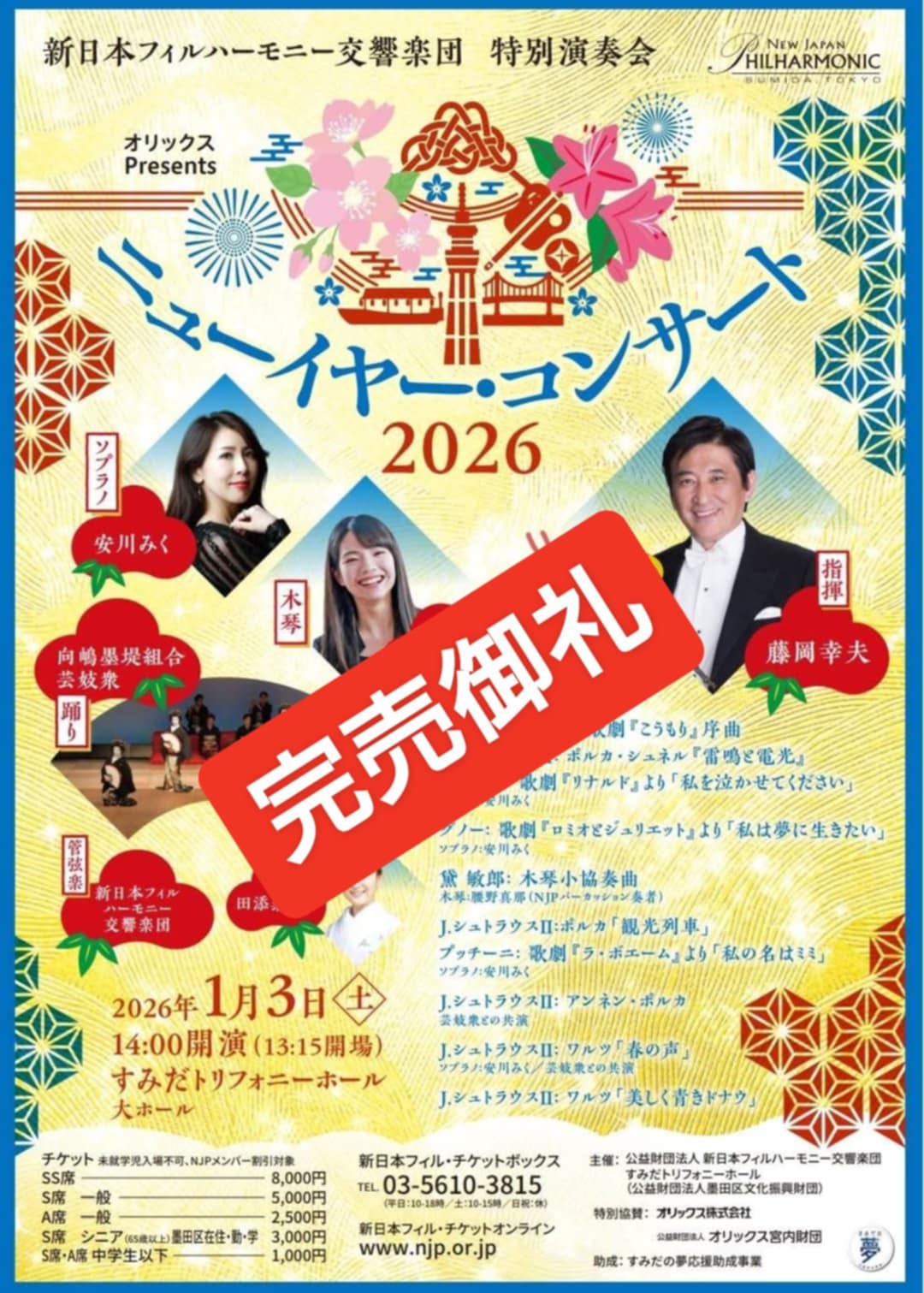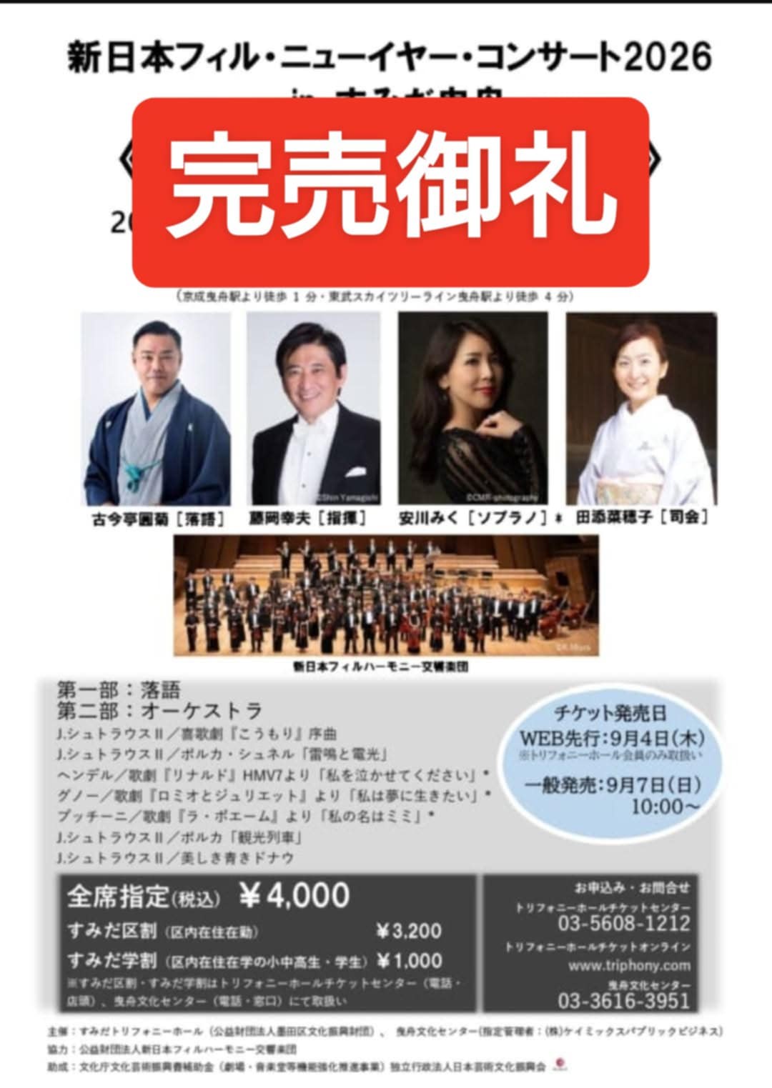 | 2025/10/11 皆様 お元気ですか? 大リーグ面白くなって来ましたね~!! 佐々木のクローザー最高です!! それにしてもYouTubeで観戦できるのは本当に便利。凄い世の中になりました…! 先週は、The 4 Players Tokyo の杉並公演、日本フィルの元コンマスの大川内弘さんのお別れの会 、東京シティフィルとのポップスコンサートなどがありました。そのレポートはのちほど。 さてさて、10/13僕の母方のルーツ岡山県津山市(駅前に御先祖様の銅像が建ってます)で関西フィルと楽しい演奏会 ↓ https://www.t-arts.or.jp/20251013kansaiphilharmonic.html 10/25は僕の生みの親の日本フィルと横浜定期💥 ↓ https://japanphil.or.jp/concert/20251025 10月18日に甚大な被害を受けた奥能登の珠洲市で演奏会を指揮します‼️僕の後輩の岩城慶太郎くんが東京から珠洲市に会社を引っ越した直ぐ後に被災。慶太郎くんは珠洲市を愛し、必死に復興活動を続けています。 そしてアマチュア・ファゴット吹きの慶太郎くんが被災前から実現を夢みて実現した珠洲市の音楽祭は第3回で遂にオーケストラ演奏会を実現‼️↓ https://notonokuni.or.jp/79 コンサート情報 https://www.fujioka-sachio.com/schedule.htm 今年も大阪で藤岡幸夫のファンの皆様との集いがあります❗️何方でも気軽に参加できますので是非🥰 11月1日(土) ホテル・ニューオータニ大阪 11時開宴 僕が司会のミニコンサートのゲストは 素晴らしいソプラノ🥰安川みくさん‼️ 詳細&申し込みフォーム(締切10月20日)↓ https://marvel-ex.com/s-fujioka-tudoukai/ その他、各地のオーケストラとたくさんコンサートがあります! 文中、文末のチラシコーナーを参照して下さいませ。 皆様のご来場をお待ちしております! ![]() エンターザミュージック(BSテレ東 毎週土曜日の朝8時半〜)は放送12年目に突入!! 山本倖千恵アナと楽しくお届けします! ![]() ![]() 10月18日(土)東京混声合唱団との共演の模様をお届け!!とにかく皆さん明るい!! めっちゃ楽しかったです(^^) ![]() リハーサル風景他、舞台裏も存分にお届けいたします。どうぞお楽しみに!! 番組ホームページ (いいね!よろしくお願いいたします!) https://www.bs-tvtokyo.co.jp/enterthemusic/ X(旧Twitter)にエンター・ザ・ミュージックの公式アカウントが出来ました。このアカウントでしか見れない動画や収録時の様子などこれからどんどん紹介します!是非ともフォローをお願いいたしますm(_ _)m↓ https://x.com/ETM2014?t=BIPeAKlsLunrEbRFRB_fcg&s=09 ![]() 10月7日はThe 4 Players Tokyo の毎年恒例6回目の杉並公会堂大ホール公演で今回もカルテットの演奏会らしくなく沢山のお客様!!ありがとうございました。 ![]() 新井鷗子さんが初めて来て下さり、大絶賛して下さり嬉しかった! ![]() CDのサイン会も長蛇の列で盛り上がりました。 皆さんありがとうございました!! ![]() 10月9日は、留学前から大変お世話になった元日フィルのコンマスの大川内弘さんのお別れの会でした。 ![]() 小林研一郎先生指揮&有志の皆様の優しさ溢れた音色に思わず涙腺が緩んだ… 懐かしい方々に沢山会えて日フィル同窓会のようで嬉しかった…。 僕の日本フィル指揮研究員時代、アマオケの演奏会で2回協奏曲を弾いて下さったり、デビューしてからは、色々アドバイスを下さった。とにかく明るく温かい方で、僕の指揮を怒る時も満面の笑顔でキツイことを言われたのが懐かしい。いつも乗っていらした117クーペカッコよかったなぁ… 心よりご冥福をお祈りいたします… ![]() 日本フィル元理事長の田邊稔さんがお書きになった本をやっと入手。凄く面白い!! ![]() 10月10日は東京シティフィルとオペラシティで、相互物産/ハイアットリージェンシー東京ベイ がスポンサーして下さったポップスコンサートでした! ![]() 沢山のお客様で大盛り上がり!!ありがとうございました\(^o^)/ シティフィルはノリノリの熱演で新しいシティフィルファンが生まれた手応え(^^) コンマスの戸澤哲夫さん&エンターでお馴染み客演首席チェロの矢口里菜子さん! 相互物産/ハイアットリージェンシー東京ベイのスポンサー・シリーズの次回は1/8三大テノールです\(^o^)/(文末チラシコーナ参照) 10月13日は僕のルーツの岡山県津山市で関西フィルと演奏会。ゴージャス・プログラムを楽しいお話付きで!観光がてら是非! 津山駅前に、僕の祖先の箕作阮甫(みつくりげんぽ)さんの銅像が立ってます(^^) チケット↓ こちらをクリック ![]() 僕の慶應義塾大学の後輩で奥能登の珠洲市在住の岩城慶太郎くんが、珠洲市で音楽祭を開き僕が指揮をします。メインはボレロ!! 岩城くんはアマチュア・ファゴット吹きで、東京の自分の会社を珠洲市に引っ越した直後に被災。珠洲市の復興に尽力しています。 珠洲市宿泊情報↓ https://www.city.suzu.lg.jp/uploaded/attachment/9308.pdf 奥能登宿泊情報↓ https://notostay.com/accommodation/ お時間ある方は是非!! https://notonokuni.or.jp/79 ![]() それでは皆さんエンターザミュージックと演奏会でお会いしましょう! 藤岡 幸夫 10月13日 ![]() 10月18日 - 19日 ![]() |