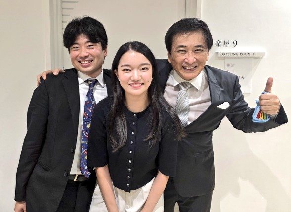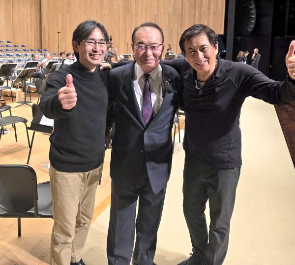 | 2025/9/14 皆様 お元気ですか? 13日の土曜日は東京シティフィルのティアラ定期(チケット完売ありがとうございました)で、練習会場が懐かしい練馬文化センター…! 今から約40年前にアマオケを結成して練馬文化センターで本番。ところが当日は記録的な大雪で、ゲネ終わりには都内の全ての交通がストップ。因みに駐車場の僕の車は雪に埋もれてた…。 それでも皆も僕も演奏をしたいと本番を強行。20人に満たないお客様(全員、僕と団員の身内か友達)の前で燃え上がったベートーヴェン交響曲第7番他が懐かしい… あの頃は指揮者になりたくて、なりたくて… そして何より、「絶対に指揮者になれる」と何の根拠もないのに信じて疑わなかった。 今思うとゾッするが、その一方で渡邉暁雄先生の内弟子にして頂き、暁雄先生が息子のように可愛がって下さっていたからだと思う。 改めて暁雄先生に感謝!! また、久しぶりに西武池袋線に乗ったのだけど、毎週通ったチェロの三木敬之先生が大泉学園駅、指揮の松尾葉子先生が石神井公園駅で、これまた懐かしく… 練馬文化センターであの頃を思いだしながら… 指揮者で食っていけるようになったのは、 多くの方々のおかげと、感謝の気持ちでいっぱいになったのであります! 先週のティアラ定期他のレポートはのちほど。 さてさて、10月4日は関西フィル定期で僕の愛するヴェルディのレクィエム!! 豪華ソリスト皆さんをお迎えして、その真の姿に迫ります!! U25 1000円↓ こちらをクリック 秋の東京での演奏会は 東京シティフィルと9/13ティアラ定期は完売。 10/10はポップスやっちゃいます‼️↓ こちらをクリック 日本フィルと10/25横浜定期は吉松隆&シベリウス!!↓ こちらをクリック 新日本フィルと11/7&8は神尾真由子さんとチャイコフスキー&僕の愛するシベリウス交響曲第5番!! こちらをクリック コンサート情報 https://www.fujioka-sachio.com/schedule.htm その他、各地のオーケストラとたくさんコンサートがあります! 文中、文末のチラシコーナーを参照して下さいませ。 皆様のご来場をお待ちしております! ![]() 9月20日(土)のエンターザミュージック(BSテレ東 毎週土曜日の朝8時半〜)は人気回の再放送で、大人気ピアニスト角野隼斗さんのモーツァルト! ![]() ![]() 関西フィルとの素敵なモーツァルトを角野くんの楽しいお話と共にお届けいたします! 番組ホームページ (いいね!よろしくお願いいたします!) https://www.bs-tvtokyo.co.jp/enterthemusic/ X(旧Twitter)にエンター・ザ・ミュージックの公式アカウントが出来ました。このアカウントでしか見れない動画や収録時の様子などこれからどんどん紹介します!是非ともフォローをお願いいたしますm(_ _)m↓ https://x.com/ETM2014?t=BIPeAKlsLunrEbRFRB_fcg&s=09 ![]() 9月19日の毎年恒例、関西フィルとのピティナ特級グランド・コンチェルトのソリスト合わせが東京でありました。 ![]() 北村明日人さんの若々しいモーツァルト! ![]() 桑原志織さんのブラームスは重量級! 進藤実優さん(ショパン)はこの日はスケジュール合わずだったけど、皆さんとの共演とっても楽しみにしてます!! 9月13日は東京シティフィルとティアラ定期で早くからチケット完売。 芥川也寸志さんの「交響管弦楽のための音楽」、林そよかさんが木嶋真優さんの為に作曲したヴァイオリン協奏曲「Star Burst」、チャイコフスキーの交響曲第5番というプログラム。 冒頭の芥川也寸志さんの25歳の時の「交響管弦楽のための音楽」は若々しいとっても魅力的な作品。あまり演奏されないので、これから積極的にやりたい。 ![]() 昨年の関西フィル初演以来の2人。 初演時同様に、完璧暗譜でそよかさんの協奏曲に命を吹き込む木嶋真優さんは圧巻!! ![]() 初日のリハ後はカミさんが留守\(^o^)/ 昔のボクだったら銀座か六本木のクラブでハニーズ達とアホになってたのに!それが今ではあーた、何故か指揮者の卵達と焼き肉(+_+) 村上史昂&野村洸太朗、気合い入れろよ!!! ![]() 林そよかさんの協奏曲に命を吹き込み新たな魅力を引き出した木嶋真優さんはとにかく凄かった!! 今回は初演より、ピアニッシモの箇所を増やして、優しく美しい響きが新鮮。悪魔的なテンションとの対比が見事!! 拍手鳴り止まず、真優さんとそよかさんが何度もカーテンコールで呼び出され、最後は客席を明るくしてやっと休憩。また再演したいので、興味あるオーケストラは是非\(^o^)/ 協奏曲で素晴らしいソロで木嶋さんと絡んだ客演の首席チェロ海野幹雄さんと(^^) ![]() 木嶋真優さんとは、新日本フィルと来年の7月3&4日@すみだトリフォニーで伊福部昭を取り上げるのが楽しみ!詳細は文末のチラシコーナーを参照。 ![]() チャイコフスキー5番ではシティフィルが壮絶なサウンドで熱演!! この曲は最後が勝利に聴こえたら大失敗。 悪魔が宿ったフィナーレは、勝利をつかもうとして掴めない狂った音楽。 コンマスの戸澤哲夫さん!!今回もシティフィルをぐいぐい引っ張って、チャイコフスキーの4楽章は崩壊してもかまわないつもりで振ったけど、ぴった