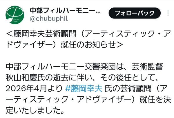 2025/11/16 皆様 お元気ですか?いよいよ冬ですね~。 忙しくなります。 ![]() 中部フィルから最初に秋山先生の後任とお話を頂いた時は、光栄でしたが4月に関西フィルの総監督に就任したばかりと、丁重にお断りしました。 ただ、その後に永合理事長と岡田事業部長が東京までいらして熱心にお話をして下さり、芸術顧問という形でお引き受けする事にしました。 秋山和慶先生が四半世紀に渡り手塩をかけたオーケストラで、特に秋山先生が団員の皆さんの再オーディションを決行したあとの近年の進化は目覚ましく、将来が楽しみなオーケストラです。 お引き受けしたからには、秋山先生の想いをしっかり受け継ぎ、皆様と新鮮な活動を目指します。 中部フィルの皆様との新たな活動を今から楽しみにしております。 どうぞよろしくお願いいたします。 ![]() 記者会見にも沢山の方々が来てくださりありがとうございました。 先週は国立音楽大学オケとの初リハーサルや、母校の高校オーケストラに遊びにいったり、エンターの収録がありました。 諸々レポートはのちほど。 12月20日は豪華に毎年大人気のクリスマス・ファンタジア こちらをクリック 12月21日は吹田のパワフル第九💥 こちらをクリック 12月24日東大阪で豪華ソリスト陣と第九💥 東大阪の文化創造館は新しい素晴らしいホールです‼️ こちらをクリック 1月8日めっちゃ楽しい三大テノールが遂に東京初登場‼️ こちらをクリック さてさて、 3冊目のエッセイ「続続・音楽はお好きですか?」が11月21日発売です!! ちゃんと自分で書いてます(笑) ↓ https://amzn.asia/d/alnhkvU ![]() エンターザミュージック(BSテレ東 毎週土曜日の朝8時半〜)は10月で放送12年目に突入しております!! ![]() 11月22日(土)は藤岡幸夫プロデュースのカルテット、The 4 Players Tokyo !! ヴィオラの中村洋乃理さんをゲストに楽しくお届け! ![]() リハーサルや舞台裏の風景もお楽しみください!! 番組ホームページ (いいね!よろしくお願いいたします!) https://www.bs-tvtokyo.co.jp/enterthemusic/ X(旧Twitter)にエンター・ザ・ミュージックの公式アカウントが出来ました。このアカウントでしか見れない動画や収録時の様子などこれからどんどん紹介します!是非ともフォローをお願いいたしますm(_ _)m↓ https://x.com/ETM2014?t=BIPeAKlsLunrEbRFRB_fcg&s=09 エンター・ザ・ミュージックが過去の放送を毎月2本厳選して、BSテレ東公式YouTubeにアップしております↓ こちらをクリック エンター・ザ・ミュージックのトーク収録がお馴染み、世田谷区の松本記念音楽迎賓館でありました。ピンチヒッターで初代相棒の繁田美貴(はんだみき)アナが登場! ![]() 山形での三大テノールの回のゲストは、大人気テノールの笛田博昭さん! 大爆笑回でした! ![]() 清塚信也さんとはラフマニノフの2番の回と、清塚信也さんの作曲家としての回の2本撮り。とにかくきよりんは頭の回転が速い!!こちらもめっちゃ楽しかった! ![]() お馴染み新井鴎子さんとはレスピーギの「ローマの噴水」の回。こちらもとっても興味深い面白い回になりました! どうぞ、お楽しみに! ![]() 12月7&8日が本番の国立音楽大学のオーケストラと初リハーサル。一昨年の初共演では凄い演奏で度肝をぬいてくれたので、今回の進化も楽しみです! ![]() 母校の高校オケに12年ぶりに遊びにいきました(^^) 久しぶりの懐かしい並木道。三年間毎日、指揮者になる夢と好きな女の子ことばかり考えながらここを歩いてた…ちょ~生意気でトンガってた45年前を思い出すと胸が熱くなるやら恥ずかしいやら… ![]() 後輩くん達、タンホイザー序曲にチャイコフスキーの悲愴交響曲と難曲だけど頑張ってて楽しかった~! 新しいホールにびっくり!!指揮者も女子が頑張ってて(僕達の時代じゃありえない)、微笑ましかった(^^) でも制服は当時のままでタイムスリップした気分。あの頃、何の根拠も無いのに絶対に自分は指揮者になれると信じて疑わなかった…今想うとゾッとする(^^; 指揮者になりたい!!という気持ちは誰よりも強い自信はあったけどそれだけ(--;) エブリバディには熱く青春して沢山恥をかいて欲しい!!それは大人になって笑い話になる人生の勲章\(^-^)/ 昨日の最後は「恋はするもんじゃない、おちるもんだぜ!!」と決まり文句(笑) ![]() ![]() 自分の高校時代はキザで絶対に友達になりたくないタイプでした(^^; 恥ずかしい~(-_-;) それでは皆さんエンターザミュージックと演奏会でお会いしましょう! 藤岡 幸夫 11月23日 ![]() |