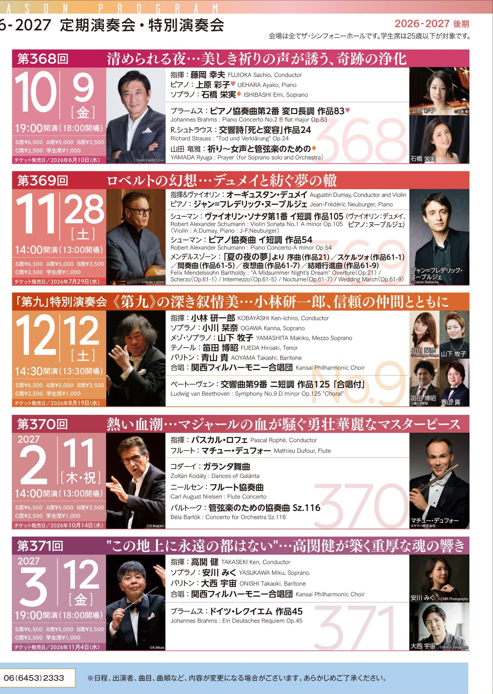 2025/7/28 皆様 お元気ですか?あっという間に8月になりますね(^^; 早いものです。 世間では石破首相の進退が騒がれてます。 石破さんが首相になる前の自民党が酷かったから負けたのに、石破さんのせいにしてる自民党上層部の連中には呆れたもんです。 政治の話題はさておき、毎朝大谷選手の活躍を楽しみにしてます。こんなにまた野球を観るようになるなんて!毎朝BSかスマホの配信で楽しんでます。 大谷選手のおかげで、BS視聴者増えたのでは?ついでにエンター・ザ・ミュージックの視聴者も増えてくれたら万々歳ですが(笑) さてさて8月は関西フィルとの演奏会が続きます!そして僕が愛してやまない交響曲ばかり!!嬉しい!! ![]() 8月11日は僕の大好きなシューマンの交響曲第3番「ライン」!!ロマンと情熱溢れた男らしい交響曲。明らかにベートーヴェンの同じ変ホ長調の交響曲第3番「英雄」を意識しています。絶対に楽しんで頂けます! しかも、ウィーン楽友協会大ホールをモデルにした美しい!いずみホールはサイズ的にもシューマンにぴったり!! 今ではシューマンはチケットが中々売れなくて…涙 お時間ある方は是非ともよろしくお願いいたしますm(__)m 8/11いずみホール(美しい!)でスター候補生たちと共演&僕の大好きなロマン溢れるシューマン・ライン交響曲!! こちらをクリック 8/24京都府城陽でオール・チャイコフスキー!ニュウニュウとピアノ協奏曲&世にも美しい悲愴交響曲!! こちらをクリック 8/31東大阪の素晴らしいホールでピティナ特級グランプリ南杏佳登場!!&僕の愛するチャイコフスキーの悲愴交響曲↓ こちらをクリック コンサート情報 https://www.fujioka-sachio.com/schedule.htm その他、各地のオーケストラとたくさんコンサートがあります! 文中、文末のチラシコーナーを参照して下さいませ。 皆様のご来場をお待ちしております! ![]() 8月2日(土)のエンターザミュージック(BSテレ東 毎週土曜日の朝8時半〜)大人気の神尾真由子さんの、マユコ先生のレッスンシリーズ! ![]() 真由子さんが「アマチュアに教えたい!」と始まった大人気シリーズ!今回もめっちゃ面白いです。 ![]() 関西フィルとの共演は僕の大好きなヴォーン・ウィリアムズの「あげひばり」。真由子さんのソロの美しさに息をのみます… 今回は真由子さんの今一番の趣味に驚愕&大爆笑!!そちらの話もお楽しみに!! 番組ホームページ (いいね!よろしくお願いいたします!) https://www.bs-tvtokyo.co.jp/enterthemusic/ X(旧Twitter)にエンター・ザ・ミュージックの公式アカウントが出来ました。このアカウントでしか見れない動画や収録時の様子などこれからどんどん紹介します!是非ともフォローをお願いいたしますm(_ _)m↓ https://x.com/ETM2014?t=BIPeAKlsLunrEbRFRB_fcg&s=09 ![]() 7月27日は毎年恒例25年目!!大人気のサマーポップスでした!毎年指揮して四半世紀(^^; 今年も超満員で、関西フィルもノリノリで大盛り上がりで楽しかった~! 毎回このコンサートで、新しい関西フィルファンが生まれるのです! 関係者の皆様に感謝です!今年もありがとうございました\(^-^)/ ![]() 7月28日は関西フィルを20年以上、熱く温かく支えて下さってきた、阪急阪神ホールディングスの前会長のお別れの会でした。 ![]() 別れの会冒頭で、関西フィルと献奏させて頂きました。 角和夫前会長に、エンター・ザ・ミュージックの企画の話をした時に「メインスポンサーを引き受けるから絶対に実現しないさい!」と激励して下さり、番組が生まれたのです。 ![]() 毎年、メインスポンサーの御礼のご挨拶に伺うと、視聴率など見向きもせず、「大切なのは継続することだよ。応援を続けるから頑張って長寿番組にしなさい」と励まして下さいました。 角前会長のおかげで、エンター・ザ・ミュージックは放送11年目。角会長の番組への熱い想いは嶋田泰夫社長がしっかり受け継いで下さり、本当に感謝しております。 角さまには、エンター・ザ・ミュージックだけでなく、あらゆる事でお世話になりました。感謝の言葉しかありません。 本当にありがとうございました。 心よりご冥福をお祈りいたします…。 それでは皆さんエンターザミュージックと演奏会でお会いしましょう! 藤岡 幸夫 |