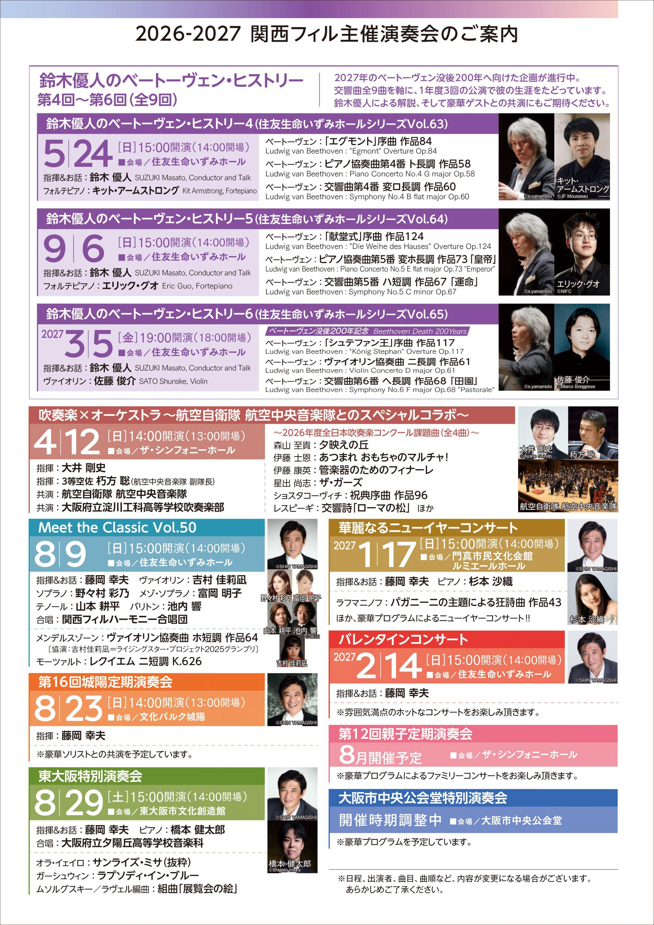 | 2025/9/7 大好きだった義母が旅立ちました… 僕は63歳。年をとるという事は、大切な方々とのお別れの積み重ねで、その悲しみは「残りの人生を丁寧に丁寧に生きるしかない!」と教えてくれます。 やがて自分にも旅立つ時がやってくるその日まで、感謝の気持ちを大切に、思い切り悔いなく生きようとかたく誓うのであります。 カミさんの母上の義母は享年93歳。最後は3人の娘たちに囲まれ、老衰だったので苦しむことなく静かに息をひきとったそうです。とにかく優しい方でした… 先週の関西フィルと万博で広瀬香美さんとの共演や、門真ルミエールでの演奏会、東京交響楽団&宮田大さんとのサントリーホールでの演奏会のレポートはのちほど。 さてさて、10月4日は関西フィル定期で僕の愛するヴェルディのレクィエム!! 豪華ソリスト皆さんをお迎えして、その真の姿に迫ります!!↓ こちらをクリック 秋の東京での演奏会は 東京シティフィルと9/13ティアラ定期は完売。 10/10はポップスやっちゃいます‼️↓ こちらをクリック 日本フィルと10/25横浜定期は吉松隆&シベリウス!!↓ こちらをクリック 新日本フィルと11/7&8は神尾真由子さんとチャイコフスキー&僕の愛するシベリウス交響曲第5番!! こちらをクリック コンサート情報 https://www.fujioka-sachio.com/schedule.htm その他、各地のオーケストラとたくさんコンサートがあります! 文中、文末のチラシコーナーを参照して下さいませ。 皆様のご来場をお待ちしております! ![]() 9月13日(土)のエンターザミュージック(BSテレ東 毎週土曜日の朝8時半〜)は藤岡幸夫プロデュース・The 4 Players Tokyo の遠藤香奈子さん! ![]() ![]() 杉並公会堂大ホールでの本番は勿論、舞台裏やリハーサル風景を楽しくお届けいたします! 番組ホームページ (いいね!よろしくお願いいたします!) https://www.bs-tvtokyo.co.jp/enterthemusic/ X(旧Twitter)にエンター・ザ・ミュージックの公式アカウントが出来ました。このアカウントでしか見れない動画や収録時の様子などこれからどんどん紹介します!是非ともフォローをお願いいたしますm(_ _)m↓ https://x.com/ETM2014?t=BIPeAKlsLunrEbRFRB_fcg&s=09 9月5日は万博で門真市(関西フィル練習拠点)の門真の星大使の広瀬香美さんと共演!! 因みにボクは門真情熱大使なのであります! 盛り上がりました~!! ![]() 前日のリハーサルから香美さんが参加。 ![]() ![]() 早めに会場に到着。台風もそれて涼しく気持ち良かった~! 門真市の宮本一孝市長もいらしてご挨拶。 ![]() 凄い沢山のお客様がいつの間にか集まり…! ![]() ヴィオラの多田素子さんから使うように渡されたミャクミャクをポケットに目立つ様に入れて…(最後の曲で指揮棒代わりにしました笑) ![]() 門真の星少年少女合唱団も元気いっぱい可愛かった~!! ![]() ![]() 超大盛り上がりで終了!!ご機嫌の広瀬香美さんと(^^) 広瀬香美さんは、素晴らしい作品&歌唱だけでなく、とっても素敵なお人柄でめっちゃ楽しかった!! 皆さんありがとうございました\(^-^)/ ![]() 万博の翌日は練習拠点の門真ルミエールホールでファミリーコンサート!沢山のお客様ありがとうございました\(^-^)/ 大人だけのお客様もかなりいらして嬉しかったです! ![]() 普段、関西フィルの練習(年間の9割以上)はこの素敵な門真ルミエールホールでしてます。 ![]() 門真市の宮本一孝市長が前日の万博に続き来て下さいました。感謝感謝です! ![]() ![]() ![]() 東響&宮田大さんとサントリーホールこども定期終了!!完売御礼楽しかった~! 東響は品格高くエキサイティング!! 宮田大さんは歌心満載で圧巻!! 司会の坪井直樹アナは高校・大学の後輩で、昔大学オケを指揮しに行った時はヴァイオリン弾いてました(^^) 皆さんに感謝!! それでは皆さんエンターザミュージックと演奏会でお会いしましょう! 藤岡 幸夫 9月13日 ![]() |