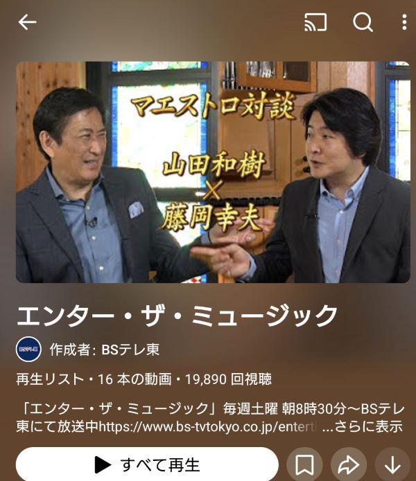 2025/11/04 皆さん お元気ですか? ドジャース優勝しましたね!! いや〜凄い7試合でした。ブルージェイズも強く、両者ファインプレーの連続で紙一重の勝負。 移動中もスマホにかじりついて、7試合堪能しました! 今回は勝った試合の見逃し配信や、その他ニュース動画を何回も見直しました。 最終戦はブルージェイズが有利だったのが、最後の最後でドジャースが逆転。 9回に山本が登板しただけで一気に空気が変わりましたね。 試合が終わっても何度も映像を見直すなんて、学生時代(ライオンズや大学ラグビーのビデオをよく見返しました。)以来初めて。あっ、最近ではラグビーのワールドカップは何度も見直しました。それ以来です。 スポーツ観戦は、感情が激しくなりアドレナリンが出て、身体に良いですね(^^) ところで、毎試合後に情報集めでネットでニュースを検索してたのだけど、特にYouTubeのニュースは嘘や作り話だらけと知り驚愕。 YouTubeで1軍を外されたと報道されたピッチャーは普通に次の試合で投げてたし、スタメン外れるというキャッチャーは普通に先発出場でびっくり。その他たくさんの嘘。 YouTubeはこんなに嘘や作り話に溢れてるのかと知り怖くなりました…。 先週はカミさんと沖縄の宮古島に行った後に、ロータリークラブや東大阪市役所で諸々。週末は石巻で第九の初リハーサルでした。レポートはのちほど。 さてさて、 3冊目のエッセイ「続続・音楽はお好きですか?」が11月21日発売です!! ちゃんと自分で書いてます(笑) ↓ https://amzn.asia/d/alnhkvU ![]() 最初の2冊がまだな方は是非! 1冊目↓ https://amzn.asia/d/4omkHl9 2冊目↓ https://amzn.asia/d/61TKIL6 エンターザミュージック(BSテレ東 毎週土曜日の朝8時半〜)は10月で放送12年目に突入!! 山本倖千恵アナと楽しくお届けします! ![]() 11月8日(土)は新井鷗子さんをゲストにサン・サーンスの交響曲第3番「オルガン付き」の後編を山本倖千恵アナと楽しくお届け! ![]() 東京シティフィル(オルガン・石丸由佳さん)のエキサイティングな演奏をお届けいたします! 番組ホームページ (いいね!よろしくお願いいたします!) https://www.bs-tvtokyo.co.jp/enterthemusic/ X(旧Twitter)にエンター・ザ・ミュージックの公式アカウントが出来ました。このアカウントでしか見れない動画や収録時の様子などこれからどんどん紹介します!是非ともフォローをお願いいたしますm(_ _)m↓ https://x.com/ETM2014?t=BIPeAKlsLunrEbRFRB_fcg&s=09 ![]() ![]() カミさんと沖縄の宮古島に行ってきました。天気が悪く、雨の沖縄でカミさんと一緒なんてあーた、修行みたいなもんですが、大リーグの観戦で盛り上がり救われました! ![]() 11月1日は大阪のホテルニューオータニで毎年恒例のファンの集いがありました。初参加の方々も沢山いらして嬉しかった。 ゲストのソプラノ安川みくさんの圧巻の素晴らしい歌唱とピアノ城村奈都子の華麗なる伴奏で大盛り上がり! 安川みくさんとは、新日本フィルや関西フィルとのニューイヤーの他、沢山の演奏会で共演予定で楽しみです。 今年も心温まる素晴らしい会となりました。発起人の林田元宏さん、鈴木雅也さん、吉村和昭さんに感謝!!(写真撮り忘れた〜) ![]() ![]() 翌日は石巻に入り、3日は11月30日の石巻第九のリハーサル。 合唱団はよく声がでてるし、アマチュアとプロ混合のオーケストラもしっかりしてる。 皆さん明るくて本番がとっても楽しみです!! ![]() ![]() 大阪ロータリーでセレッソ大阪の日置貴之社長(写真右)を卓話者としてご紹介して来ました。僕の従姉妹が秘書をしていて、日置さんとは、セレッソと関西フィルでコラボしようと盛り上がってます。 ![]() ロータリーの後は、関西フィルと芸術提携を結んでいる東大阪の市役所へ。 野田義和市長と12月24日の東大阪での第九の記者会見。 超豪華ソリスト陣&東大阪の合唱団と関西フィル合唱団の合同でのパフォーマンス。 今から凄く楽しみです!! 詳しくは文末のチラシコーナーを参照してください。 ![]() 11月7&8日はトリフォニーで新日本フィルと僕の愛するシベリウスの交響曲第5番を取り上げます。幸せ…!!(両日ともチケット完売ありがとうございます)。 それでは皆さんエンターザミュージックと演奏会でお会いしましょう! 藤岡 幸夫 10月25日 ![]() 11月7日 11月8日 ![]() |